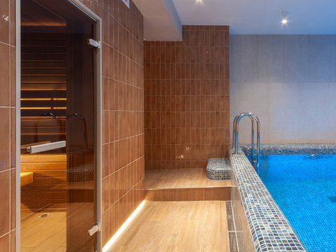 Теплый бассейн и все!!!! Кафель битый, где сидишь там и раздевалка, хамам не работал сгорели тены, в финской сауне не было света, ну и в принципе места, за ребёнка 13 лет взяли как за дополнительного взрослого....не рекомендую...есть сауны дешевле и уютнее намного. ...